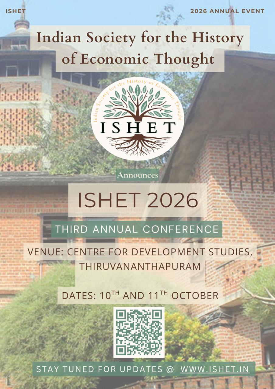 This is the third annual conference of the Indian Society for the History of Economic Thought (ISHET). ISHET has been established to revive teaching and research in the sub-field of history of economic thought (HET) in India.
